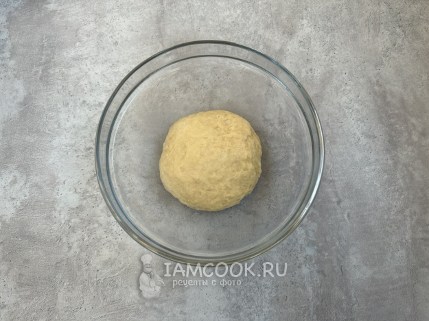 Руками замесите тесто до однородной массы. Если тесто слишком сухое добавьте немного воды, а если липкое - чуть больше муки. Скатайте тесто в шар, заверните в пищевую пленку и дайте отдохнуть 30 минут.
