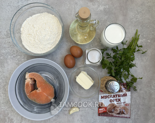Соберите по списку все необходимые ингредиенты для приготовления равиоли с семгой в сливочном соусе.
