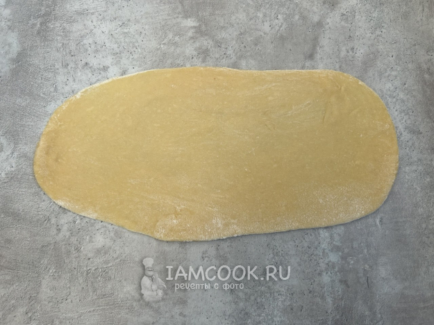 Разделите тесто на 2 равные части. Раскатайте каждую часть в тонкий пласт толщиной около 1 мм.