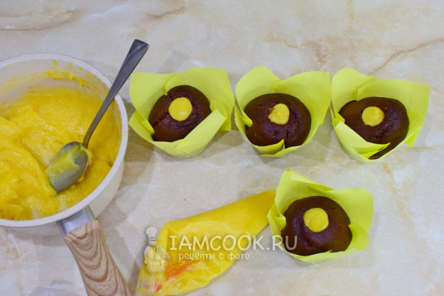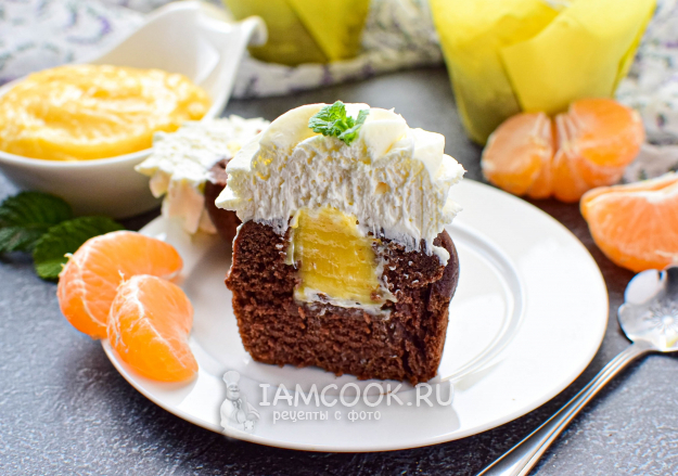 Наполните мандариновым курдом капкейки и сверху украсьте кремом.