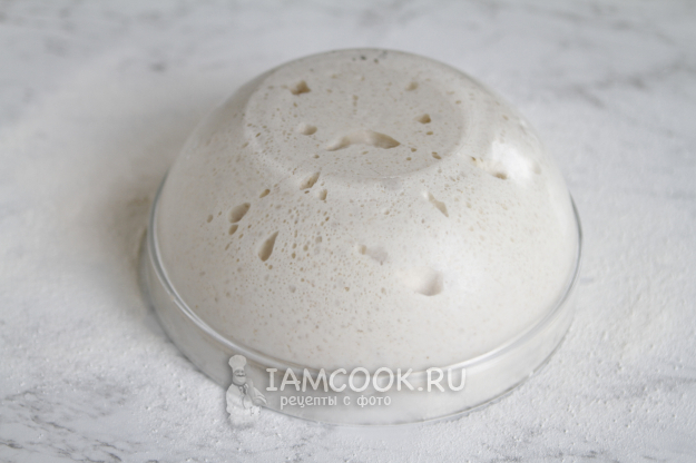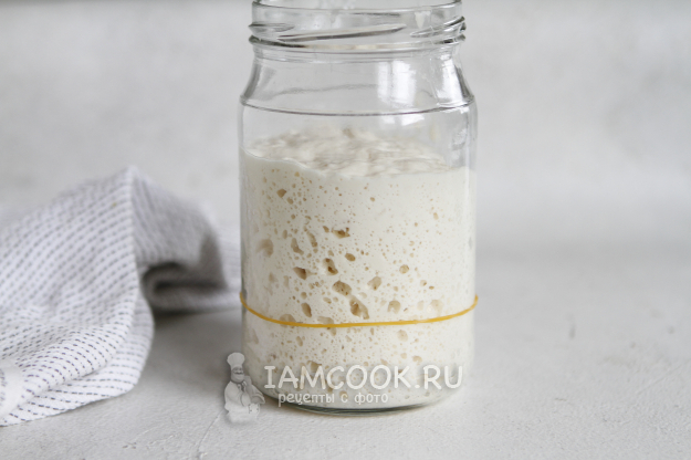 На пике берем нужное количество закваски по рецепту. Остатки снова кормим по той же схеме. Ждем, когда закваска подрастёт, и убираем в холодильник, если не планируете печь на следующей день.