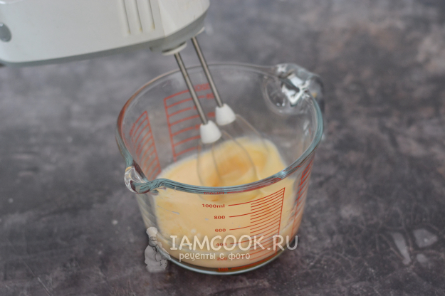 Миксером взбейте всё на средних оборотах в течение 1 минуты, чтобы сахар растворился.