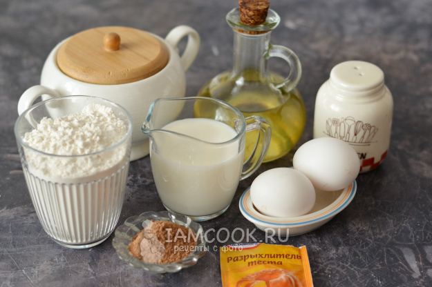 Начнём с коржа-основы. Подготовьте все необходимые продукты для теста.