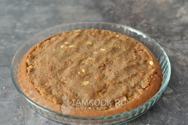 А затем уплотните ложкой, чтобы пирог приобрёл первоначальную форму.