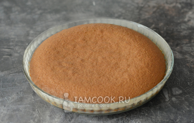 Если планируете подавать пирог в той форме, в которой он выпекался, то выньте остывший корж из формы, а форму вымойте. Ну а если нет, то просто переложите корж на блюдо.