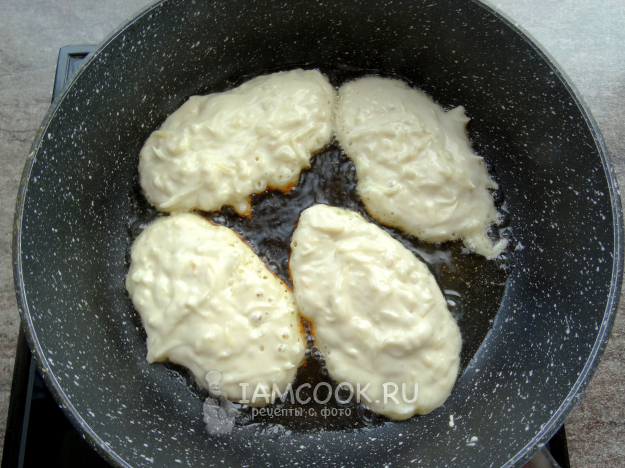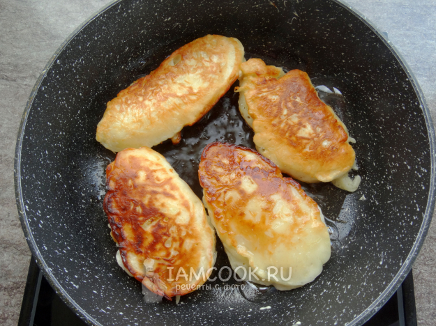 Жарить на среднем огне до румяного цвета с обеих сторон и до плотного пирожка.