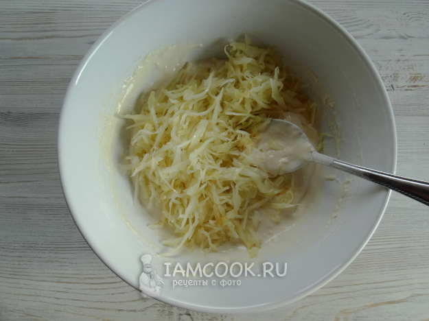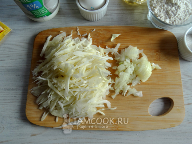 Капусту мелко нашинковать, мелко нарезать и лук.