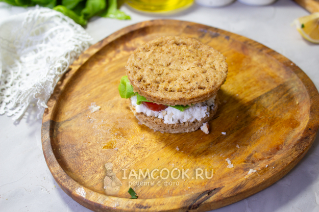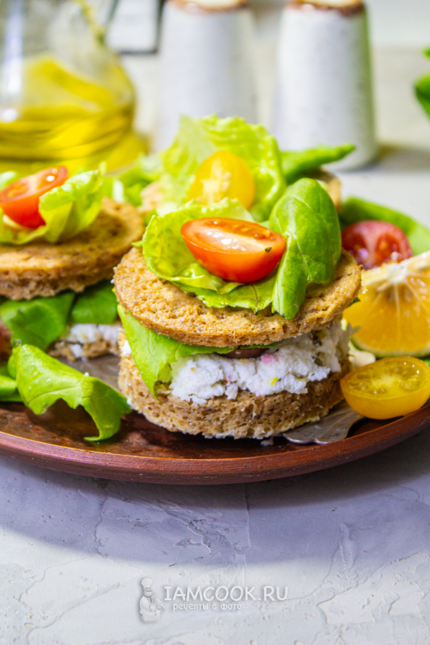 Булочки разрезала на 2 части, смазала творожным сыром и уложила листья салата и помидоры. Накрыла второй половинкой. Вот такая красота получается! Можно дополнить жареным или яйцом пашот, творогом, авокадо, зеленью и др.