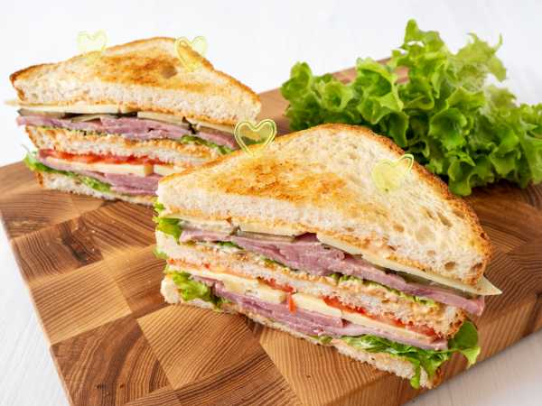 Сделать два больших сэндвича и разрезать их пополам.