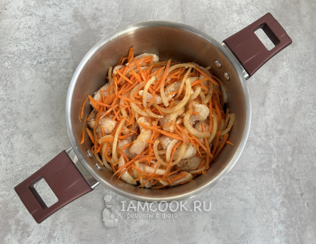 Добавьте к овощам рыбу и еще раз перемешайте.
