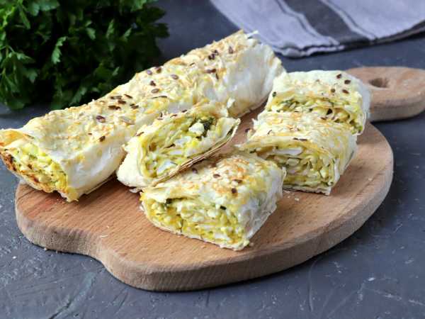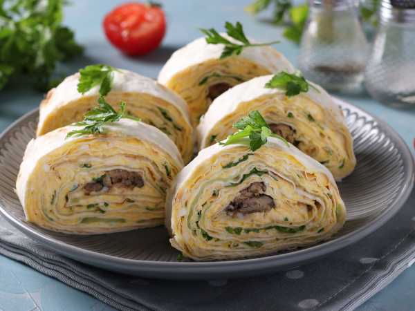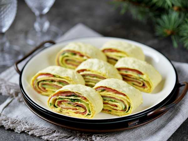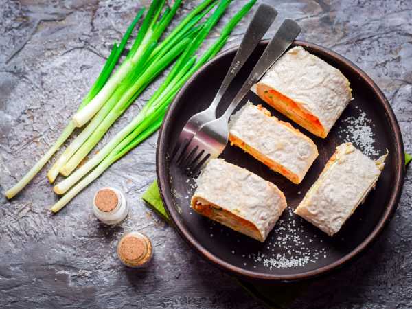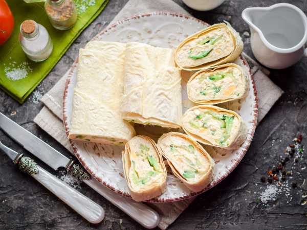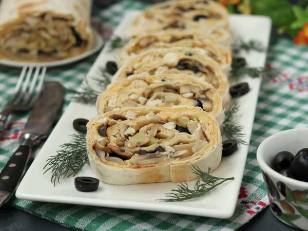 Рулет из лаваша с индейкой и сыром готов. Подавайте на закуску.