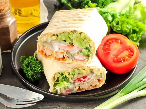 Прежде чем собирать рулет, обязательно подготовьте все ингредиенты. Ведь после того, как вы покроете лаваш соусом, нужно быстро выложить ингредиенты слоями, чтобы лаваш не промок.