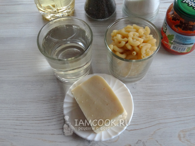 Сырые макароны в духовке с сыром готовим из представленных ингредиентов.