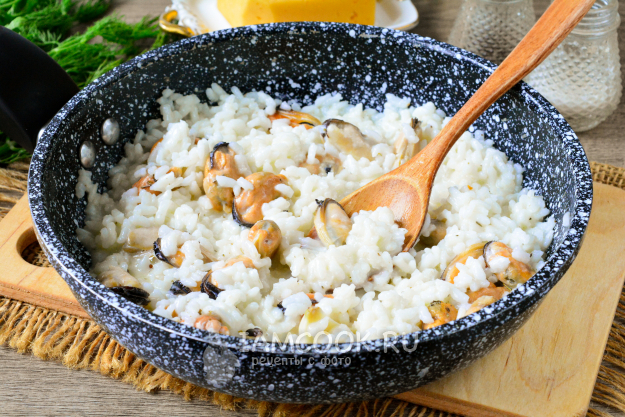 Мидии, запеченные с рисом, сразу подавайте к столу.