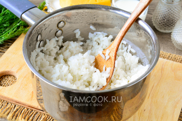 Рис промойте, всыпьте в кипящую подсоленную воду и варите до готовности, примерно 12-15 минут. Соотношение риса к воде - 1:2.