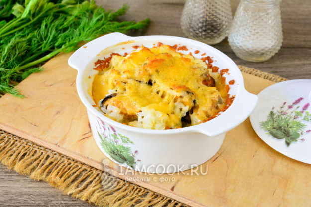 Запекайте мидии с рисом в духовке 15-20 минут, чтобы сыр сверху подрумянился. Температура духовки - 180°С.