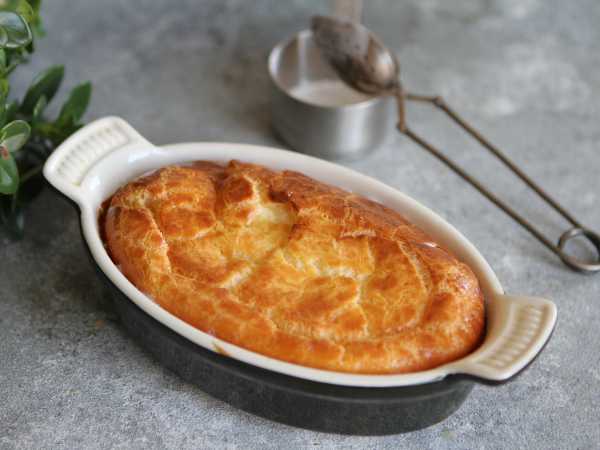 Достаньте готовую запеканку, оставьте ее в форме минут на 10, а затем переложите аккуратно на блюдо.
