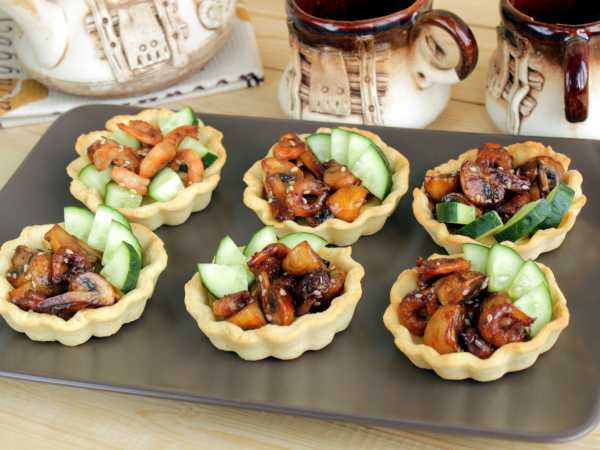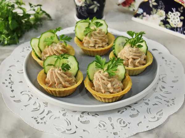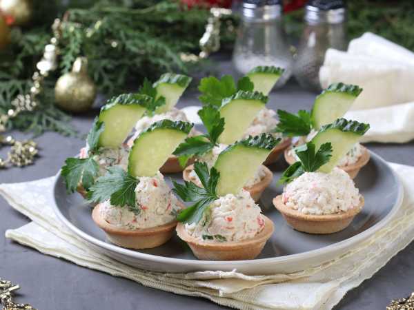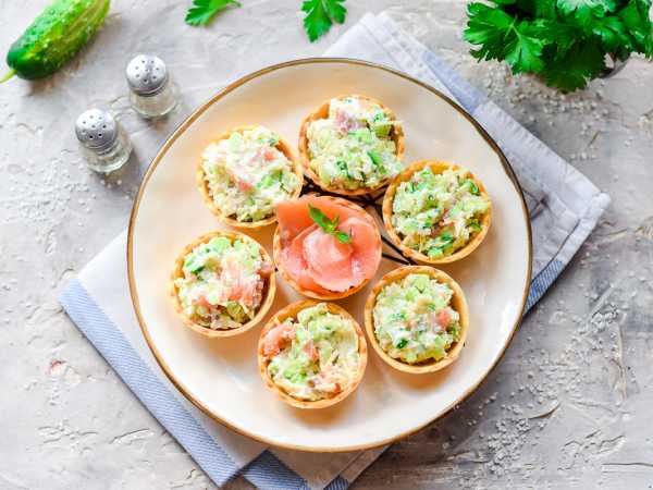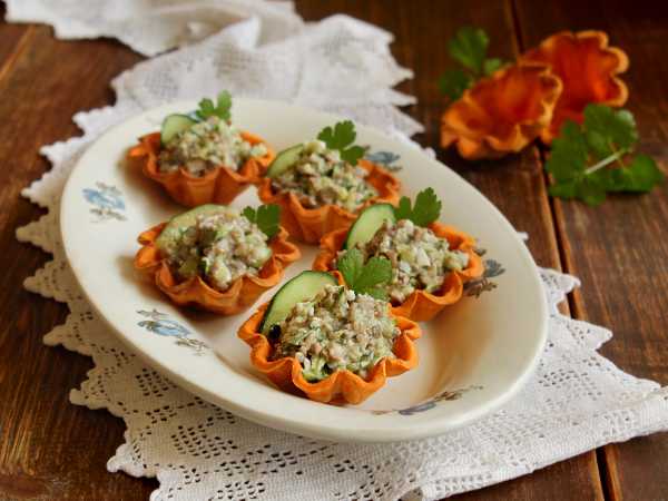 Тарталетки с курицей и огурцом готовы к подаче.