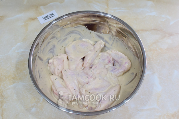 Крылышки тщательно обмажьте получившимся маринадом и оставьте постоять на 1 час, чтобы они промариновались.