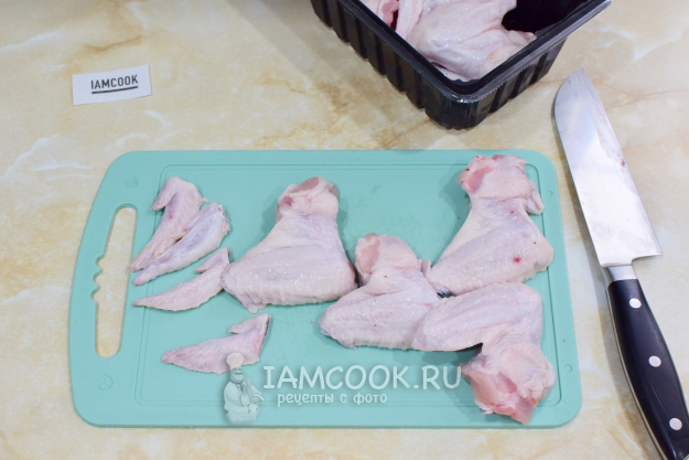 От каждого куриного крылышка отрежьте самую маленькую часть. Она нам не понадобится.