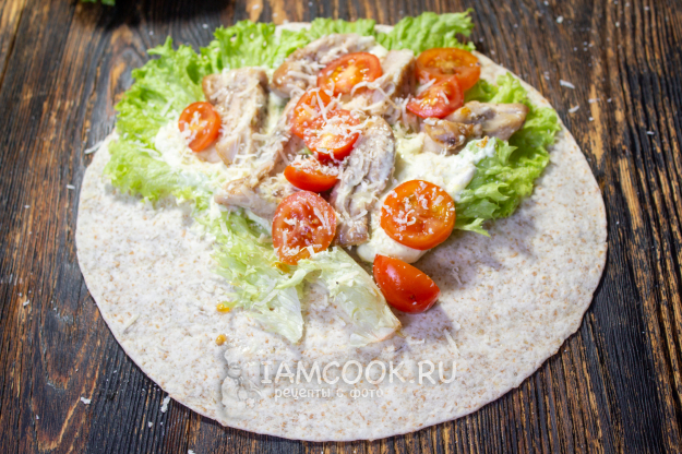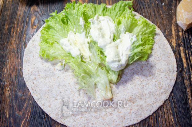 Соберите необходимые продукты для приготовления ПП Цезарь-ролла.
