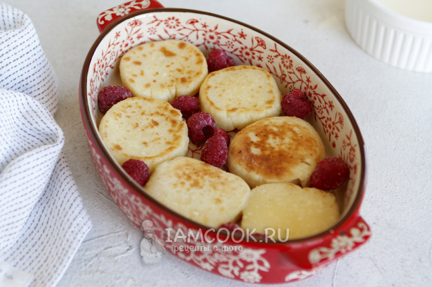 Запекайте сырники в течение 20 минут, пока сметанная заливка не подрумянится.