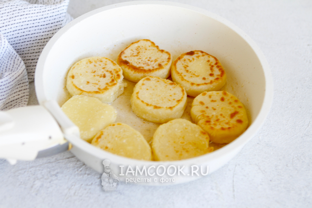 И на умеренном огне обжарьте сырники до золотистой корочки с обеих сторон, примерно по 3 минуты с каждой.