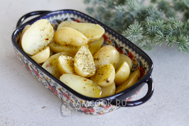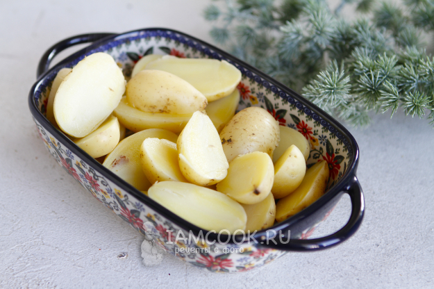 У меня средний по размеру картофель, поэтому я разрезала его пополам.