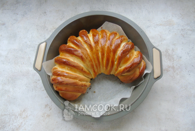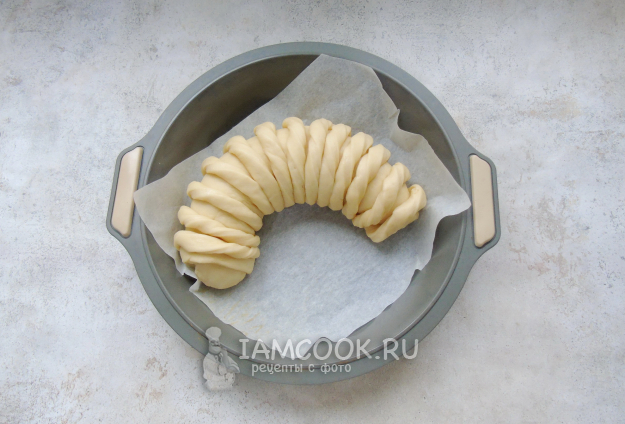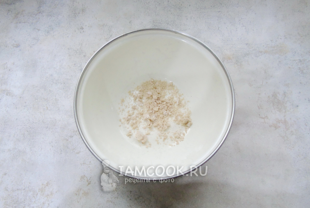 Приготовьте тесто. В миску накрошите дрожжи.