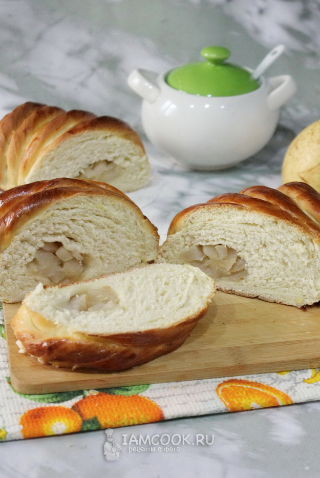 Сдобный, вкусный, пышный и ароматный рулет с грушей готов.