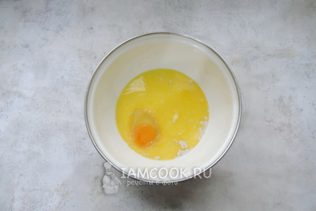 Добавьте яйцо, растопленное сливочное масло. Насыпьте соль, сахар и ванильный сахар. Перемешайте эти ингредиенты.