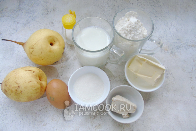 Соберите ингредиенты для приготовления рулета с грушей.