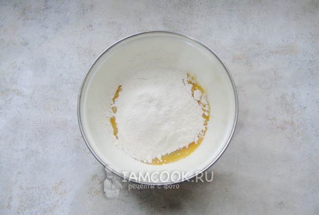 Постепенно насыпьте просеянную муку.
