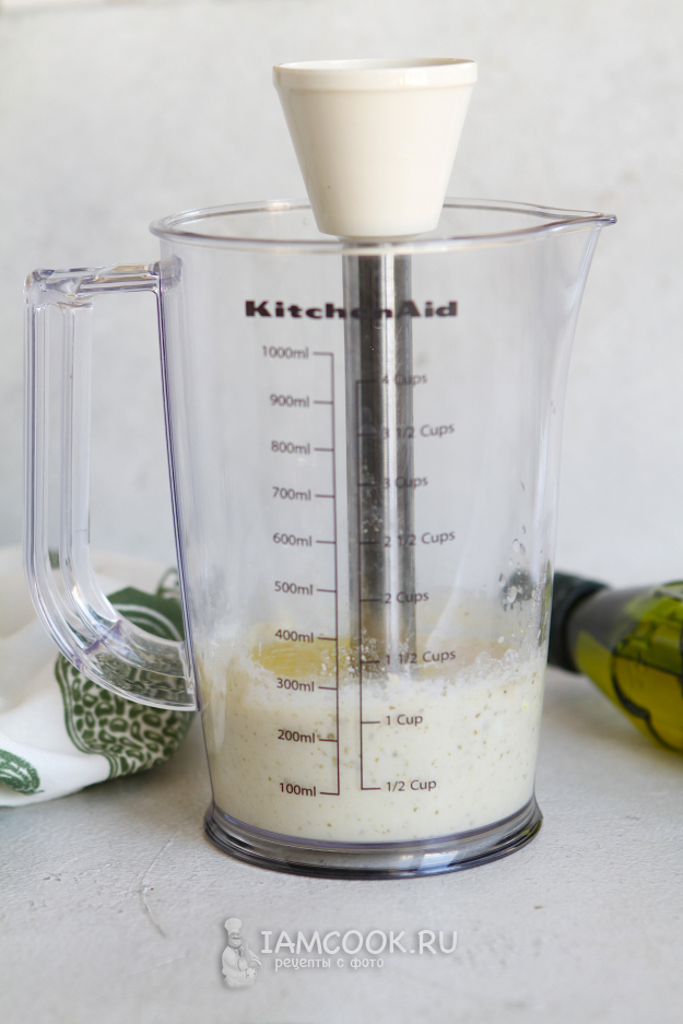 В течение 30 секунд пробить все ингредиенты еще раз. Попробовать на соль, специи, при необходимости добавить недостающие. Готовый майонез переложить в подходящую посуду и убрать в холодильник.