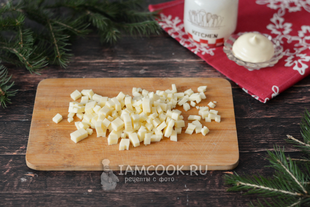 А если у вас нарезка соломкой, то сыр можно натереть на крупной тёрке.