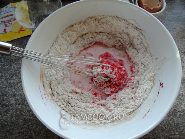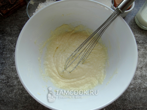 В процессе вымешивания (венчиком) добавить молоко.