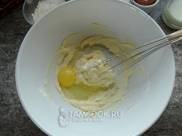 Мягкое масло растереть с сахаром, добавить яйцо.