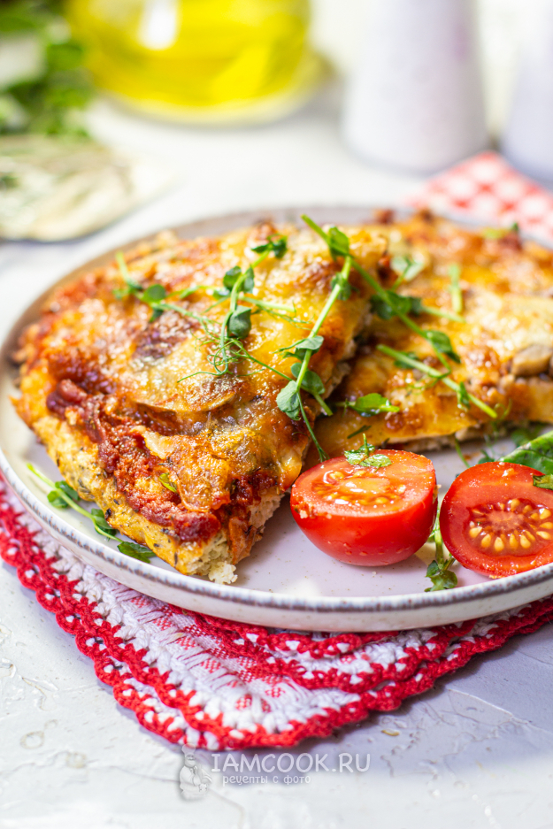 Наша ПП пицца из цветной капусты готова! Украсьте ее свежей зеленью.