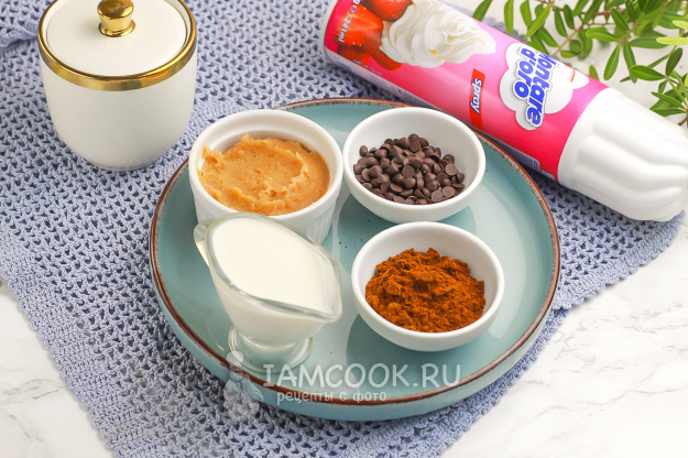 Для топпинга приобрести взбитые сливки в баллончике или взбить 50 мл сливки жирностью 33% в домашних условиях.