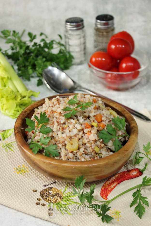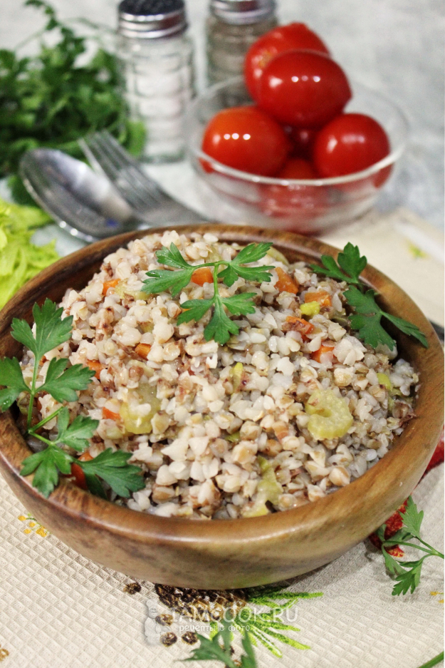 Вкусная и полезная гречка с сельдереем готова.