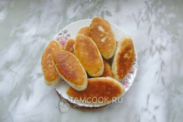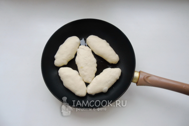Края лепешки соедините, формируя продолговатый пирожок. Выкладывайте пирожки швом вниз на горячую сковороду с растительным маслом.