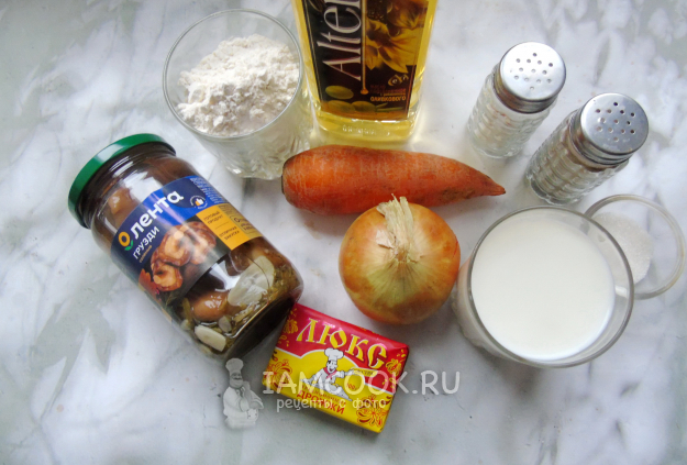 Все ингредиенты для приготовления жареных пирожков с солеными груздями - перед вами, на фото.