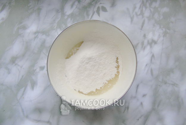 Постепенно добавьте просеянную муку. Сначала перемешивайте тесто ложкой в миске. Когда оно станет гуще, переложите на стол, присыпанный мукой.