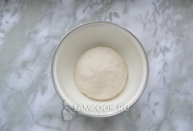 Замесите эластичное, достаточно крутое, но мягкое тесто. Накройте его пленкой и поставьте в теплое место.