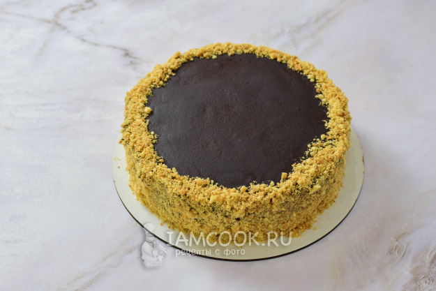 Затем обсыпьте бока крошкой. Уберите торт в холодильник на ночь, чтобы он успел пропитаться.