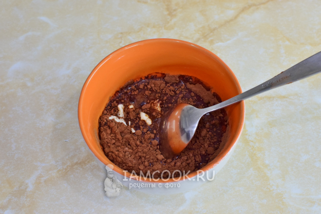 Для приготовления глазури соедините сливочное масло, молоко, сахар и какао. Нагрейте до горячего состояния, чтобы все ингредиенты перемешались до однородности. Готовую глазурь остудите.