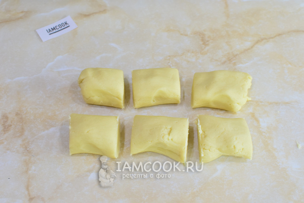 Затем добавьте яйцо и соду. Постепенно подсыпайте просеянную муку и замесите мягкое песочное тесто. Долго его месить не надо, иначе оно будет брать больше муки.