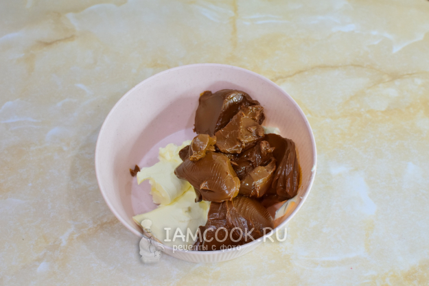 Для приготовления крема смешайте мягкое сливочное масло с вареной сгущенкой.