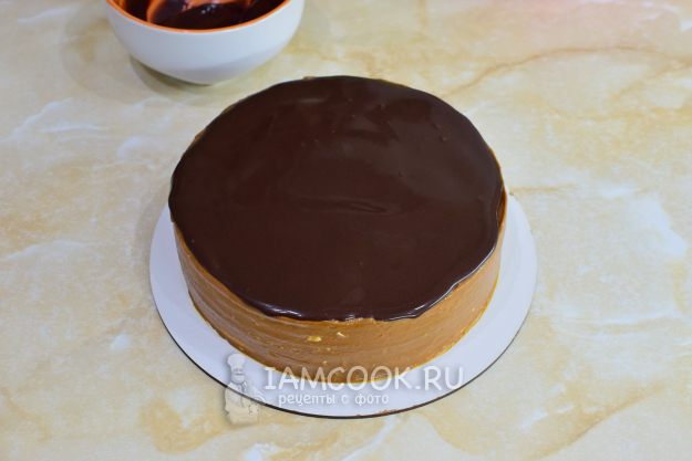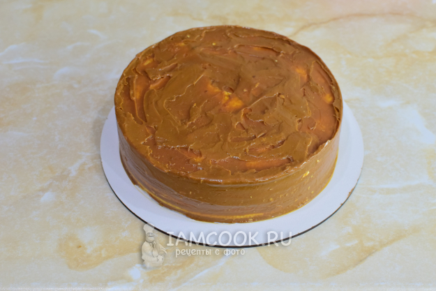 Оставшимся кремом обмажьте верх и бока торта. Дайте ему 1-2 часа постоять в холодильнике, чтобы крем застыл.