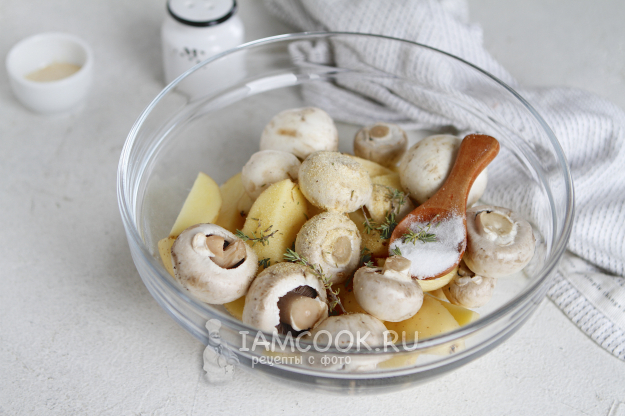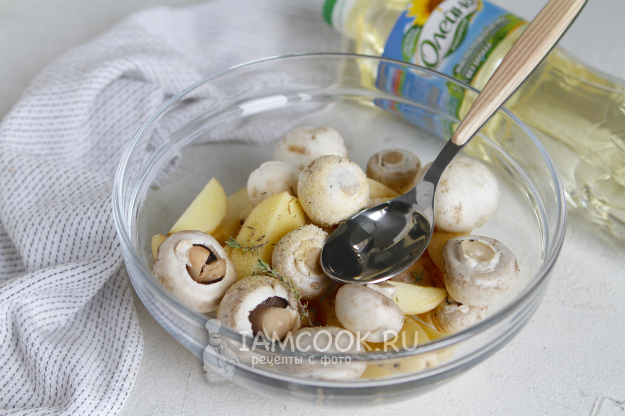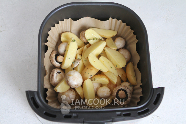 Продукты для приготовления картофеля с грибами в аэрогриле - перед вами.